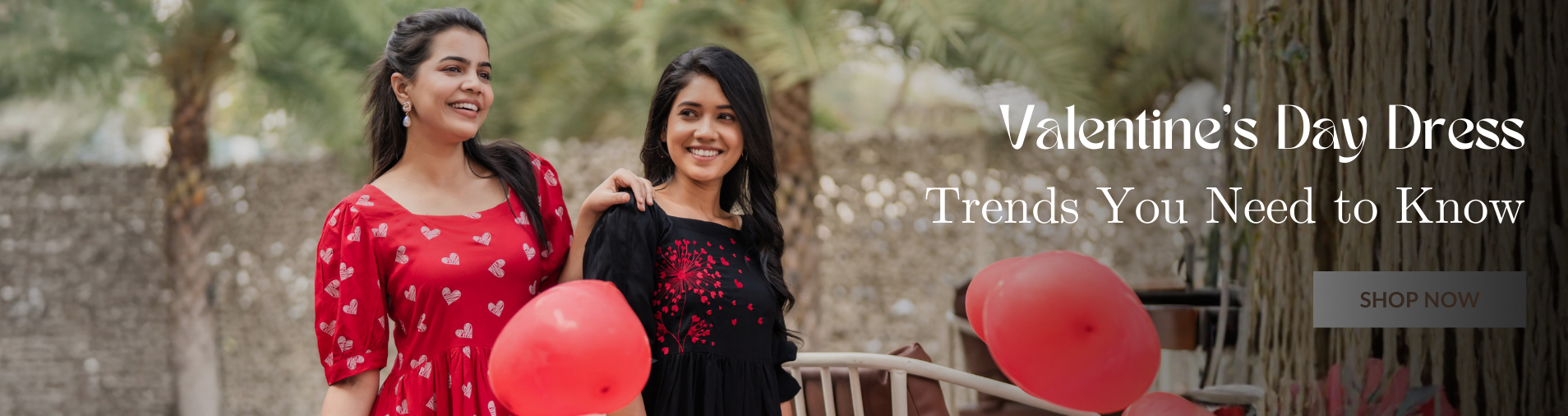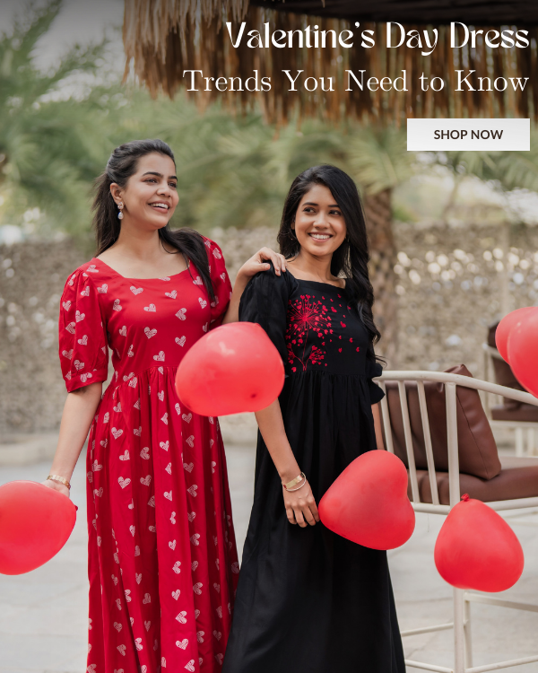 Heartspell Valentine Red Viscose Dress with Square Neck & Puff Sleeves with Cuff