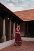 A graceful plum Anarkali-style maxi crafted from a soft and fluid poly-viscose fabric. Designed with a classic round neckline and elegant umbrella flare this piece is elevated with intricate embroidery and foil print placement for a rich festive appeal.