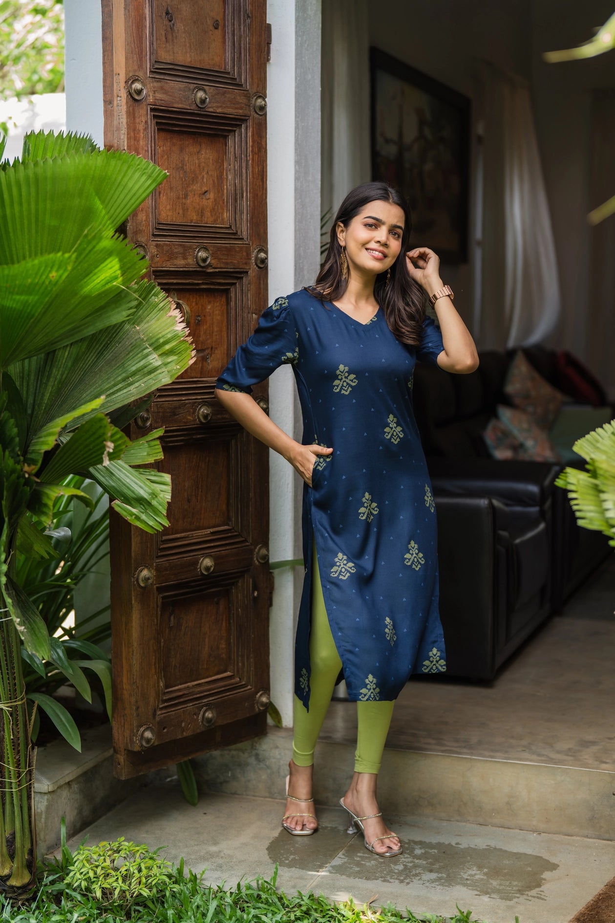 Rs. 899.00Green Blossom Chic with floral printed Viscose Kurta