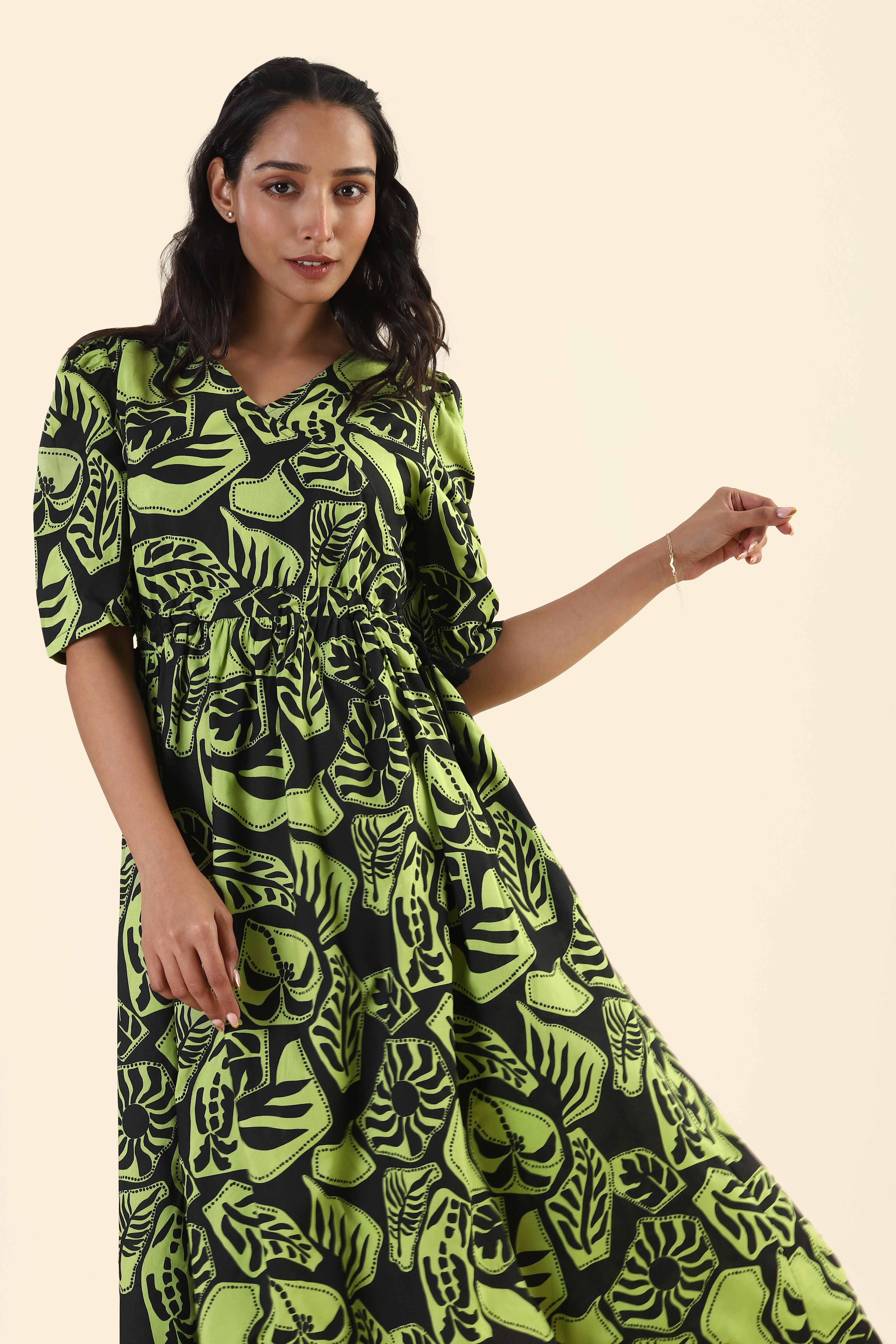 Jungle Eclipse Green Printed Viscose Maternity and Feeding dress