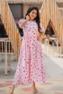 Crafted in soft and breathable viscose this umbrella-shaped dress features an elegant off-white base highlighted with charming heart-inspired rotary prints giving it a playful yet classy appeal. Designed with a coat-style overlay look this dress blends comfort with a stylish layered silhouette.