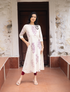 Moonlit Swans Violet Viscose Dress with Frill Neck & Embroidered Yoke