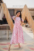 Crafted in soft and breathable viscose this umbrella-shaped dress features an elegant off-white base highlighted with charming heart-inspired rotary prints giving it a playful yet classy appeal. Designed with a coat-style overlay look this dress blends comfort with a stylish layered silhouette.