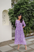 Lavender Ring Viscose Dress with Square Neckline & Puff Sleeve