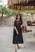 Crafted in soft and breathable viscose this elegant umbrella-fit dress features a classic black base highlighted with a striking red rose embroidery placement that adds a bold yet graceful charm. Designed with a flattering square neckline and a flowy silhouette. The elasticated puff sleeves finished with delicate frills lend a feminine touch making it perfect for everyday wear casual outings or relaxed gatherings.