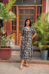 Bring effortless elegance to your maternity wardrobe with this dark grey printed maxi dress, designed for comfort, movement, and modern motherhood.