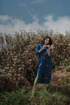 Starlink Grace Navy Viscose Kurta with Chinese Collar & 3/4 Sleeves